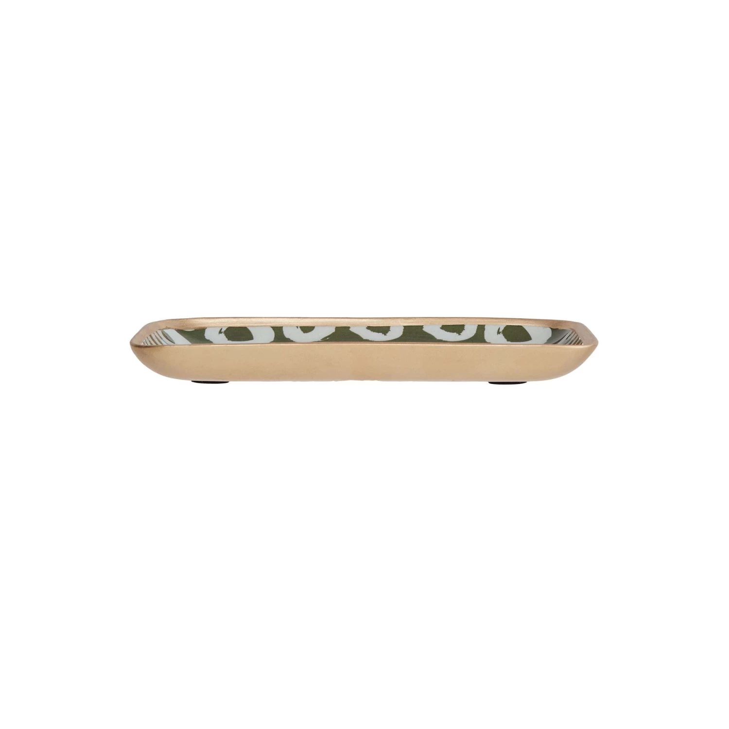 In einem raffinierten Schmelzvorgang entsteht die wunderschöne Emaille-Oberfläche des Pattery Dekotablett Aluminium. Das grafische Muster wird von einer Kante in Gold gerahmt, woraus ein moderner und zugleich eleganter Look entsteht. Sie nutzen das außergewöhnliche Tablett z.B. für Nüsse und Tannenzapfen, als Schmuckablage oder als dekorativen Hingucker im Bad. Mit Pads an der Unterseite zum Schutz empfindlicher Oberflächen. In verschiedenen Farben und Größen erhältlich, ideal auch zum Kombinieren.