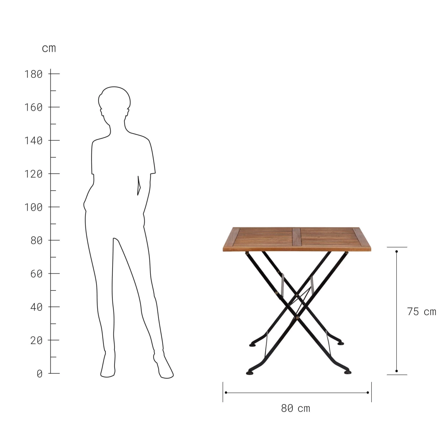– Klapptisch 80 x 80 cm aus Akazienholz und Metall