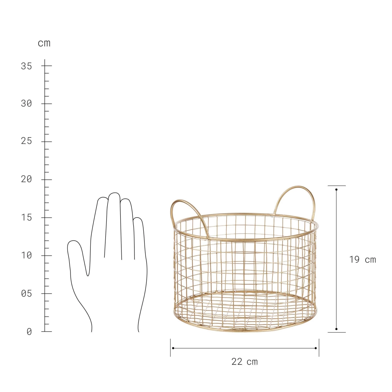 Ordnung kann so chic aussehen mit dem runden Hoop Korb aus Metall. Der trendige Korb mit Griffen räumt z.B. im Wohnzimmer mit Fernbedienungen und Ladegeräten, mit Flur mit Briefen und Schlüsseln und im Badezimmer mit Fläschchen und Tuben auf. In zwei Größen und in Schwarz und Gold erhältlich.