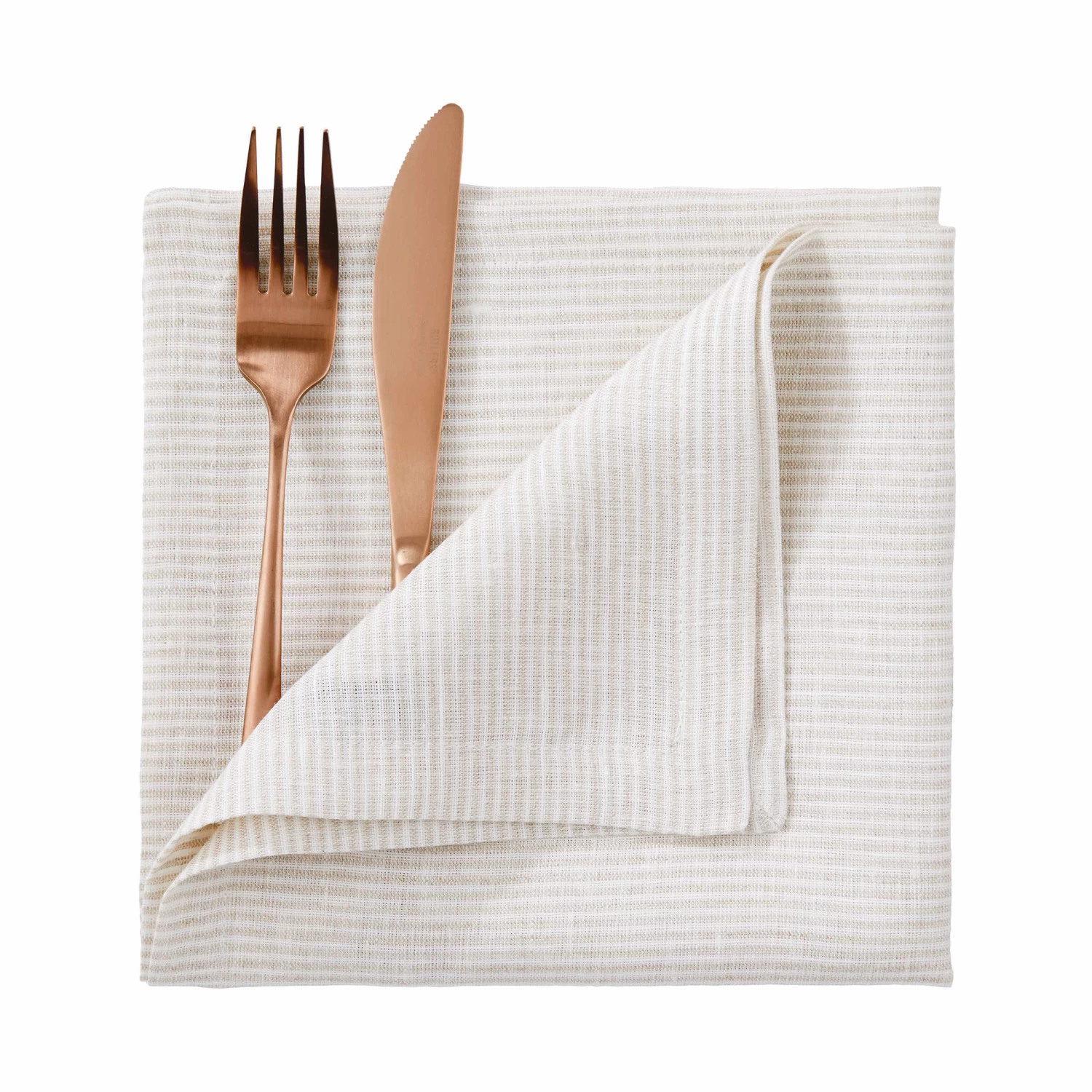 Natürlichkeit und dezente Struktur: Die Schönheit des Naturmaterials Leinen kommt bei der weiß-beige gestreiften Lagos Serviette unaufdringlich zur Geltung. Mit der hochwertigen Stoffserviette veredeln Sie Ihren gedeckten Tisch – vor allem, wenn Sie den authentischen Look bzw. den Skandi Style mit Holz und Geschirr mit reaktiver Glasur lieben.