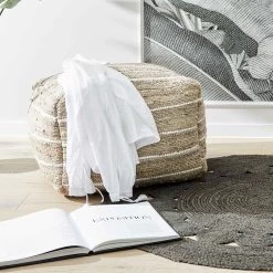 Kein Pouf wie jeder andere: Beim handgefertigten All Nature Sitzpouf zeigt sich das Naturmaterial Hanf von seiner charakteristischen Seite. Individuelle Unregelmäßigkeiten in der Webung sind sichtbar, und das harmoniert wunderbar mit der neutralen Farbgebung. So wird jeder Sitzwürfel zu einem dekorativen Unikat – und mit Tablett im Handumdrehen sogar zum praktischen Beistelltisch, zum Beispiel neben Ihrem Lieblingssessel.